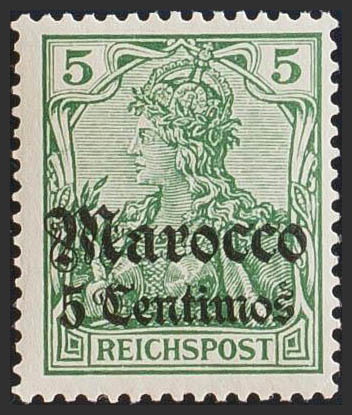 English ★★Yvert 19A. 1905. 5 cts over 5p green. MAGNIFICENT. (Michel 20, 24 Euros)