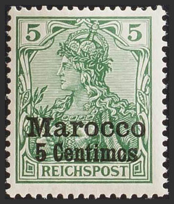 English ★★Yvert 8. 1900. 5 cts on 5 p green (Type II). MAGNIFICENT AND RARE. (Michel 8II, 250 Euros)