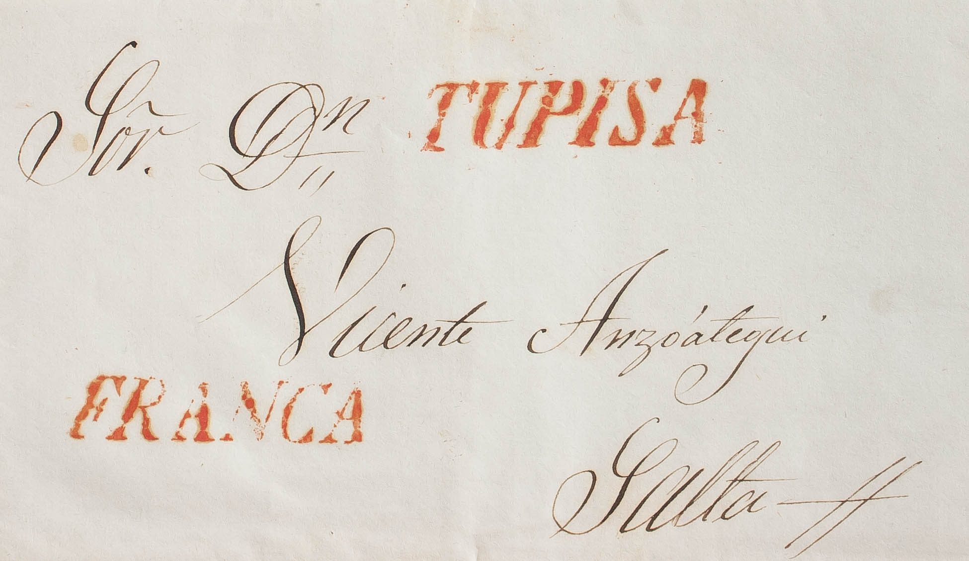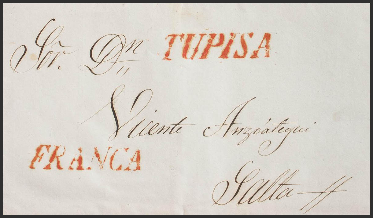 1855. TUPIZA to SALTA. TUPISA and FRANCA brands, in red. MAGNIFICENT.