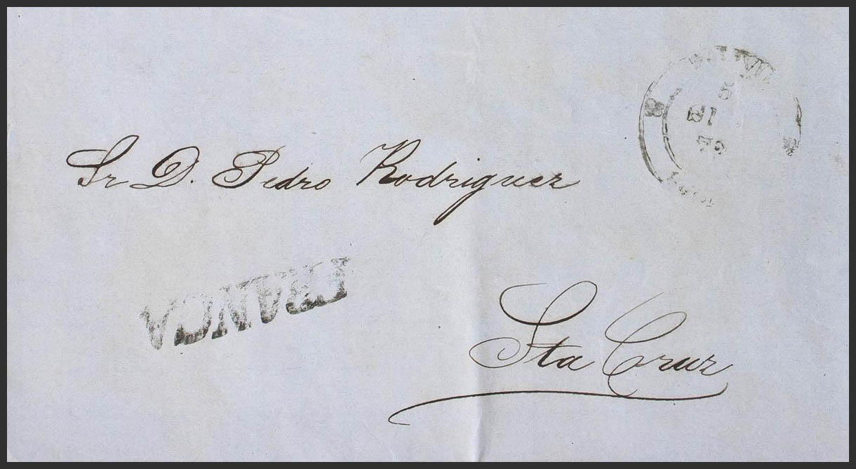 English 1872. SUCRE TO SANTA CRUZ. BOLIVIA / SUCRE dater and FRANCA mark. MAGNIFICENT.