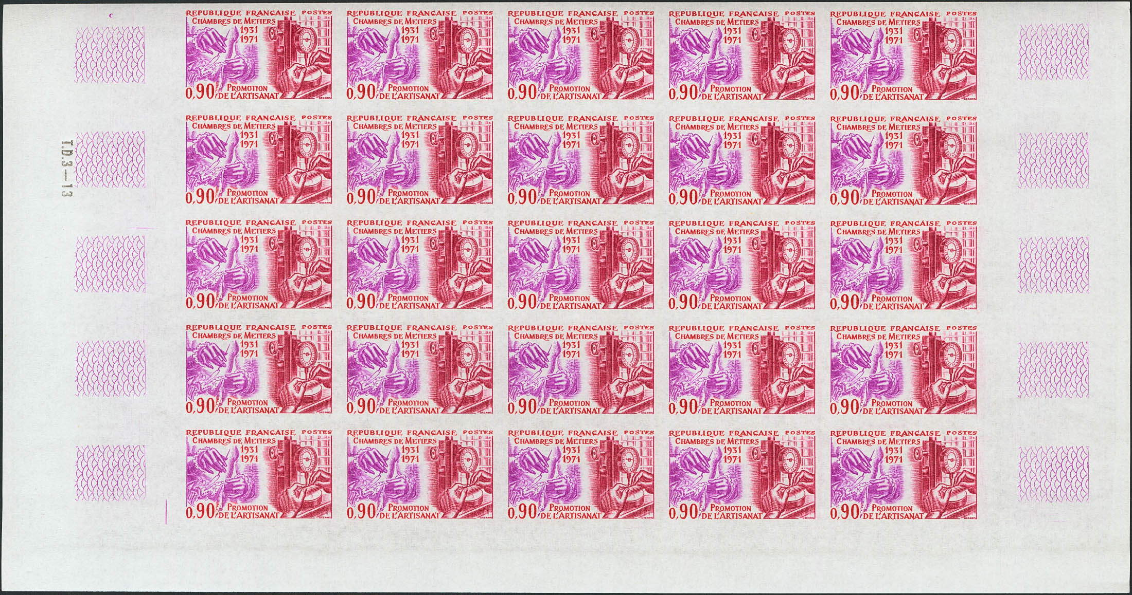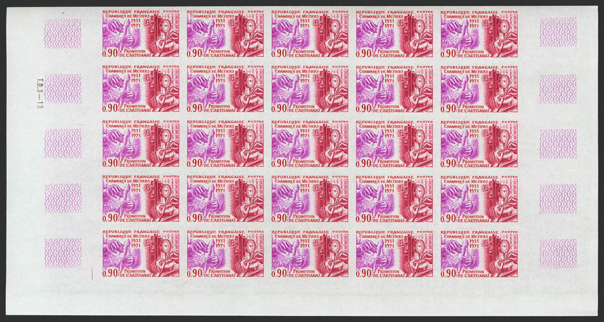 ★★Yvert 1691a(25). 1971. 90 multicolored cts, block of twenty-five. NO TEETH. MAGNIFICENT.