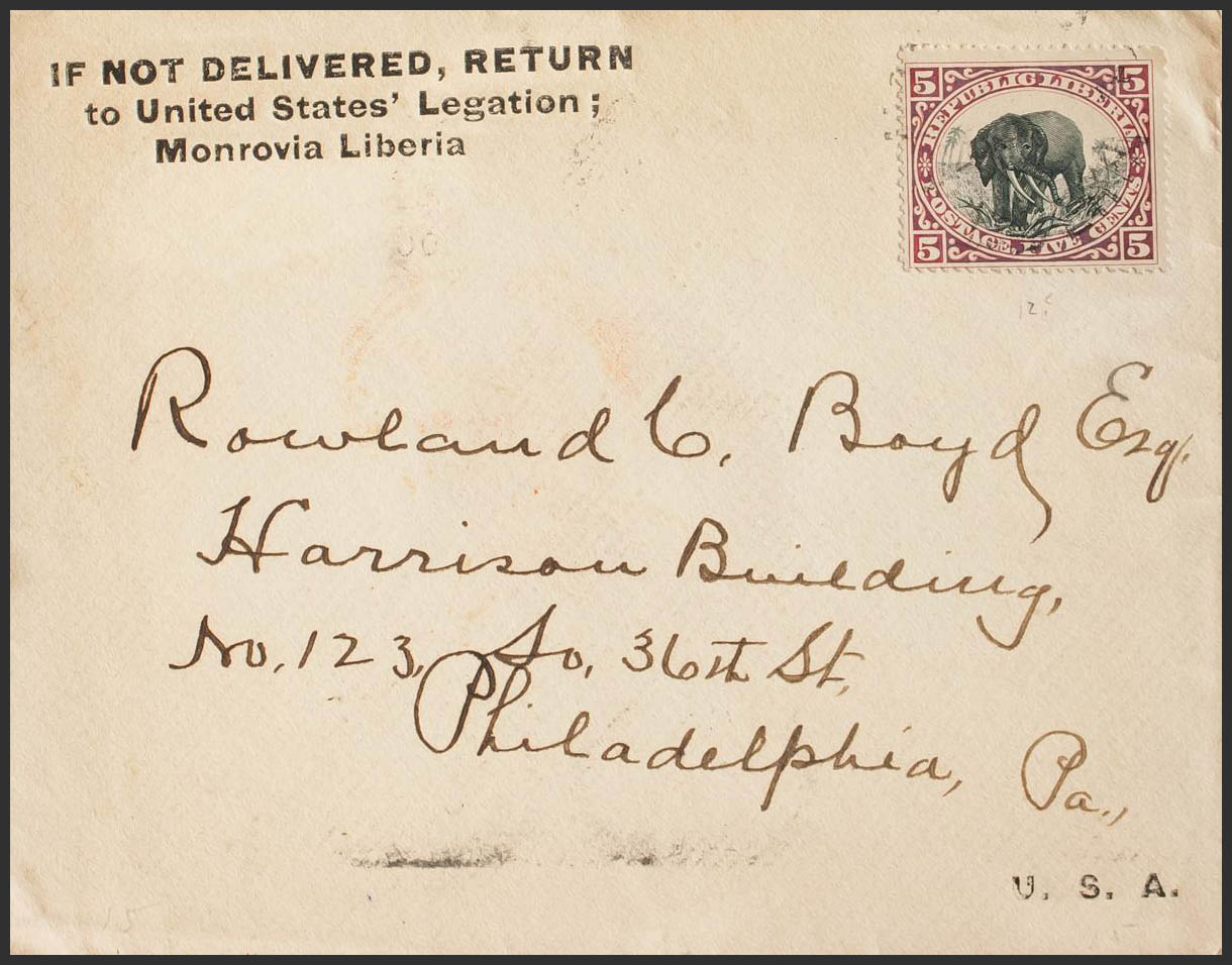 Yvert 43. 1900. 5 cents carmine and black. MONROVIA to PHILADELPHIA (USA). On the back arrival. MAGNIFICENT.
