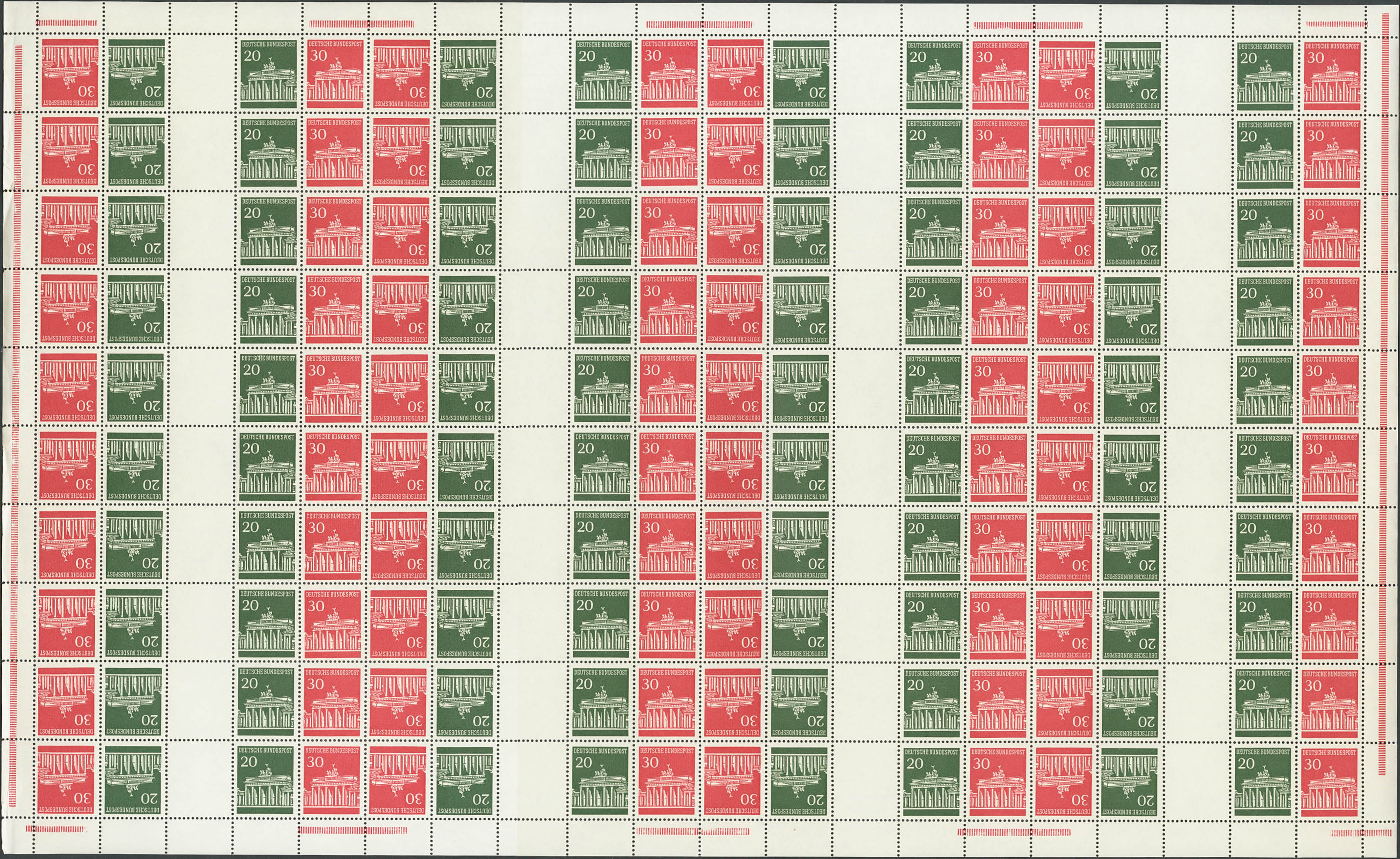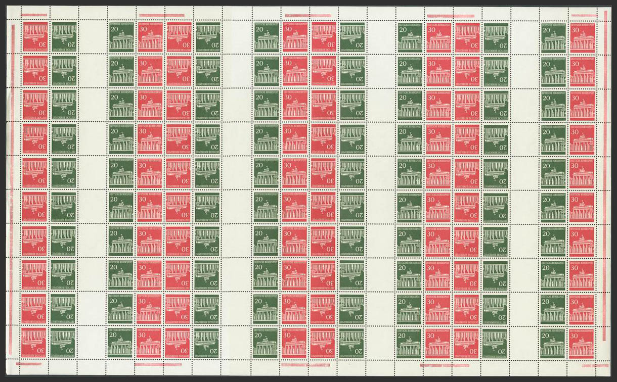 ★★1966. 20p green and 30p pink red, full sheet (folded in the center for storage in the folder) with various combinations of sheets or blocks for cards with interpanel and TETE BECHE. MAGNIFICENT. (My MHB14 90 Euros)