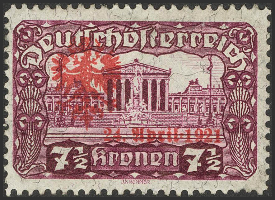 ★1918. Set of seventeen of the twenty-one values issued for the territory of the Tyrol with the overprint "Eagle" (no more than two hundred and twenty complete series were issued and the missing values are not the key by number of stamps issued), also includes some loose value of the series of the Plebiscite of the Tyrol of 1921. MAGNIFICENT AND VERY RARE.