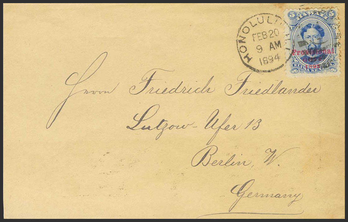 Yvert 48. 1894. 5 cents overseas. HONOLULU to BERLIN (GERMANY). PRETTY.