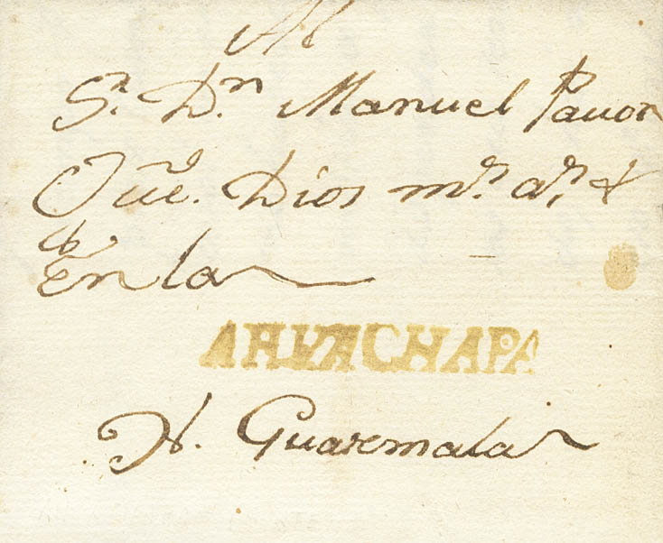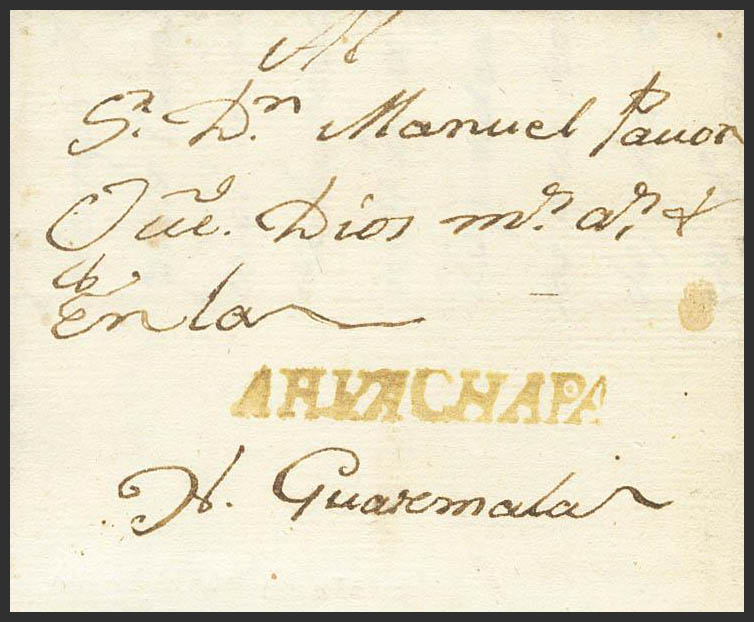 1808. AHUACHAPAN to GUATEMALA. AHUACHAPAN brand, in sepia (PE1) 2004 edition. MAGNIFICENT AND EXTREMELY RARE CIRCULATED IN THE COLONIAL PERIOD, ESPECIALLY IN EL SALVADOR.
