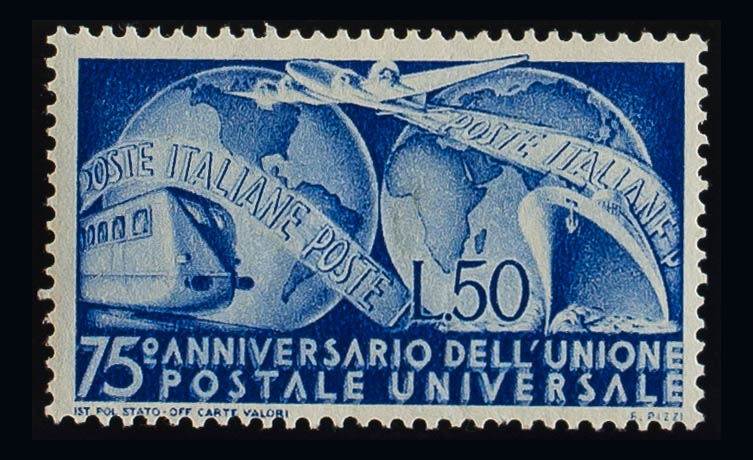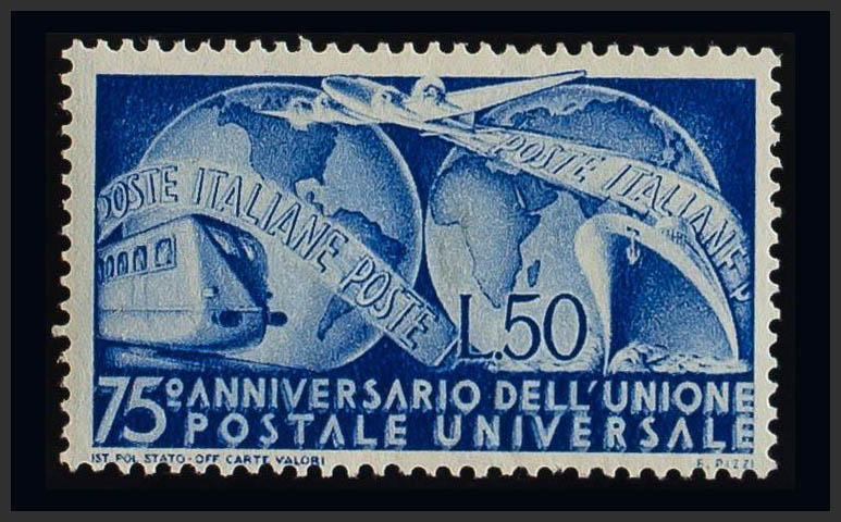 ★Yvert 538. 1949. 50 lira blue. MAGNIFICENT. Yvert 2016: 30 Euros