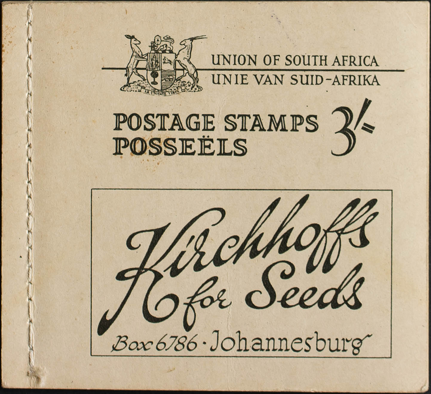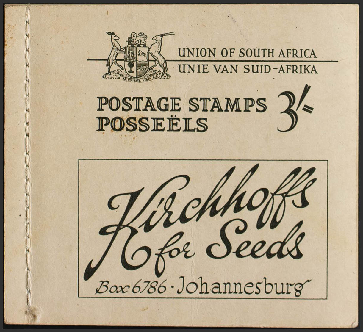 English ★★1948. KIRCHHOFFS advertising card of 3 sh containing two sheets of each ½ p, 1 p and 1 ½ p. MAGNIFICENT. (SG SB18)