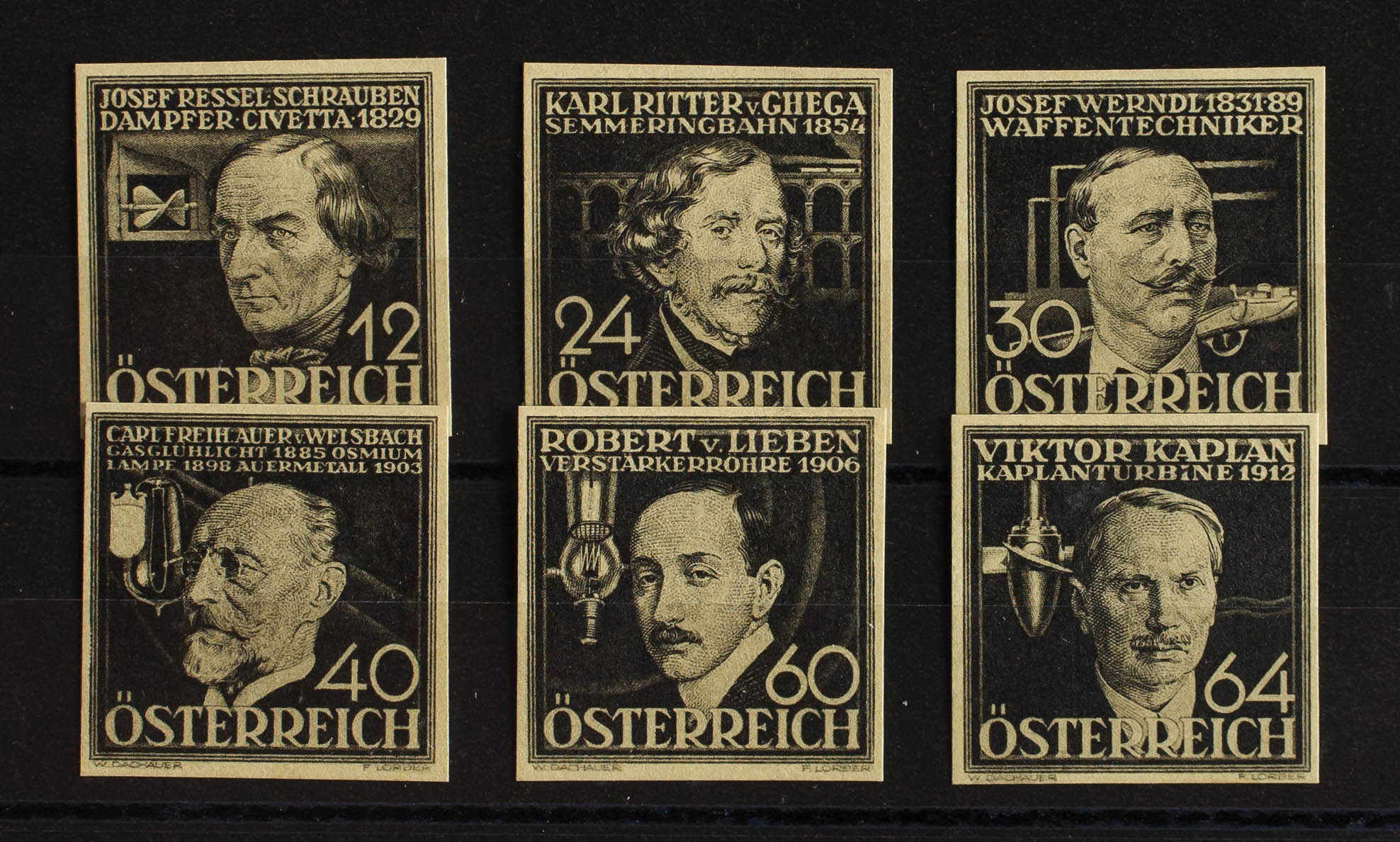 (★)Yvert 489/94. 1936. Complete series. PROOFS (without serrations and in black), on yellowish cardboard. MAGNIFICENT.
