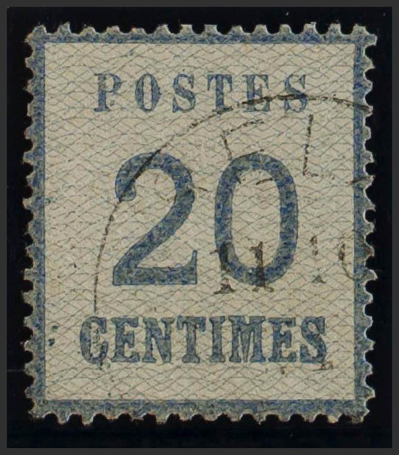 Yvert 6b. 1870. 20 cts ultramarine clear (inverted "burelaje" variety). BELFORT postmark. MAGNIFICENT. Yvert 2010: 125 Euros
