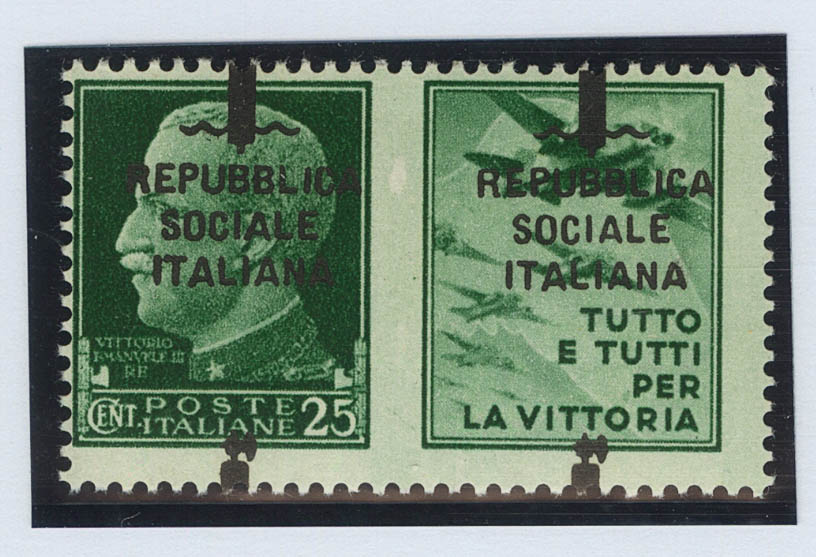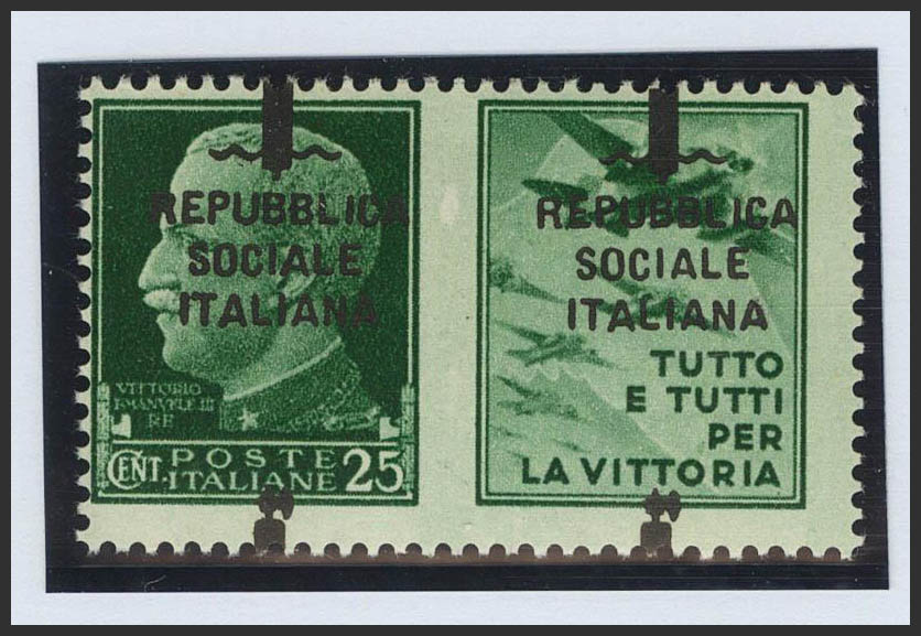 ★★Yvert 21. 1944. 25 cts green (Type III vignette). Variety VERTICALLY DISPLACED OVERLOAD. MAGNIFICENT. (Sasson 27)