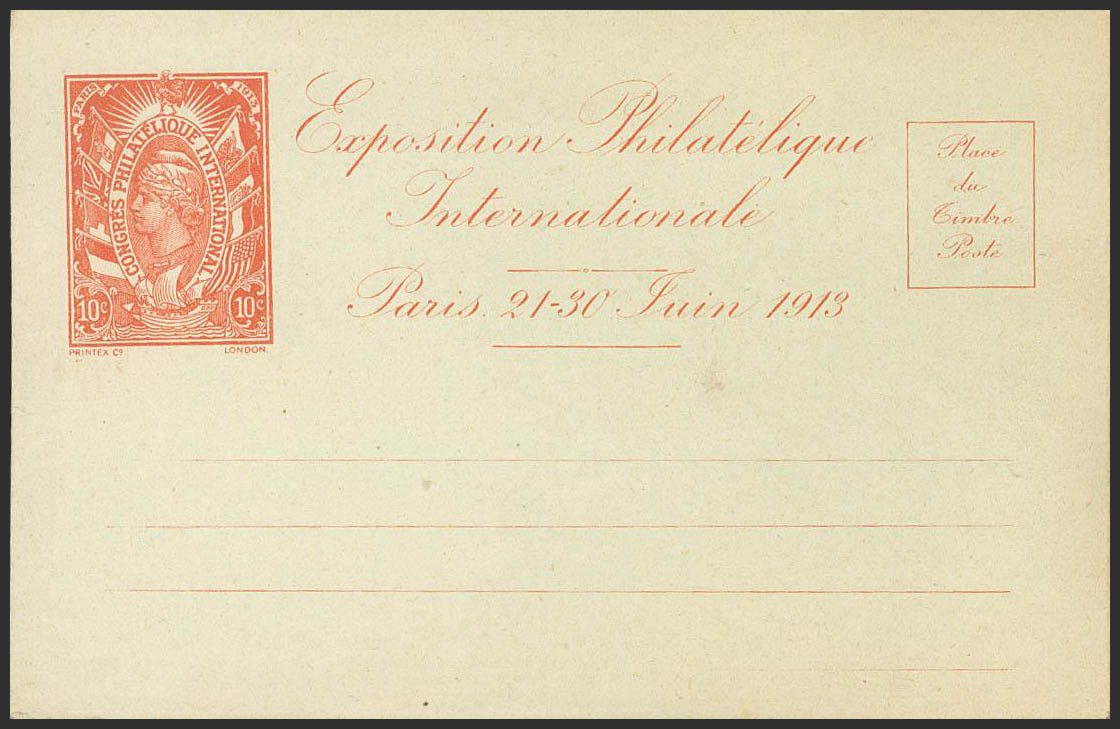 English (★)1913. Complete set of six Pseudo-Integer cards Postcards from the EXPOSITION PHILATELIQUE INTERNATIONALE DE PARIS 1913. MAGNIFICENT AND RARE SET.