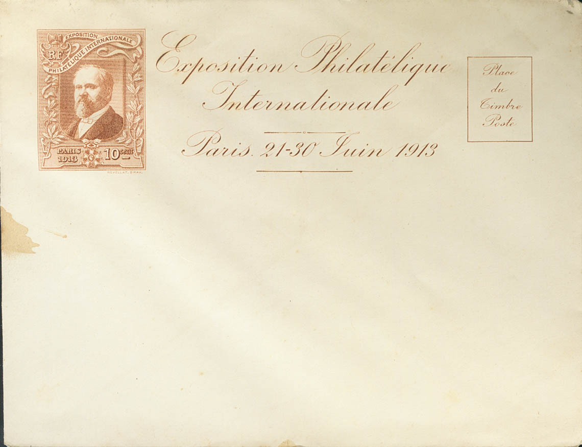 English (★)1913. Complete set of five Pseudo-Integer covers Postcards of the EXPOSITION PHILATELIQUE INTERNATIONALE DE PARIS 1913. Minor stains. BEAUTIFUL AND RARE SET.