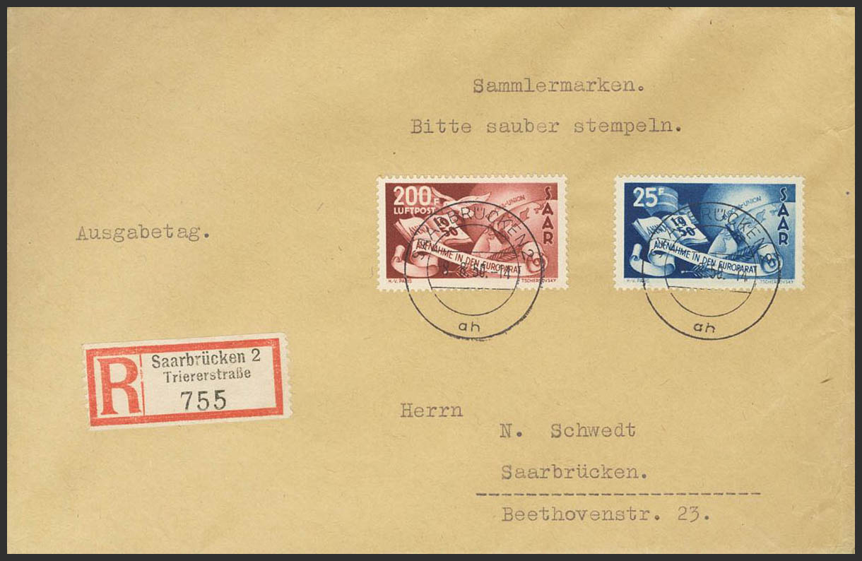 Yvert 277, Aerial 13. 1950. Complete series. Certified First Day Cover. MAGNIFICENT AND VERY RARE. (Michel 297/98, 1,900 Euros)