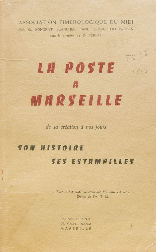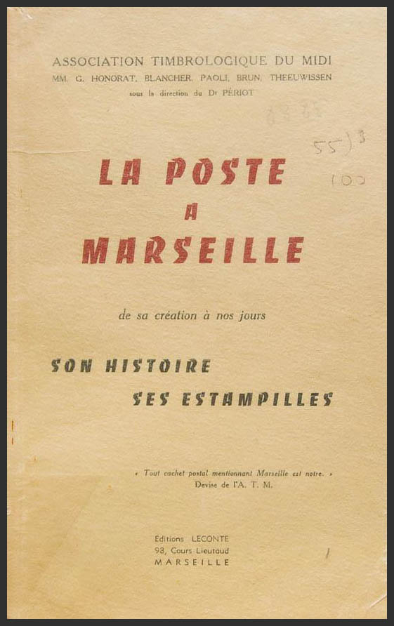 1955. THE POST TO MARSEILLE. Association Timbrologique du Midi. Leconte Edition. Marseille, 1955.
