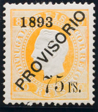 ★Yvert 95. 1892. 75 reis on 80 yellow reis. MAGNIFICENT.