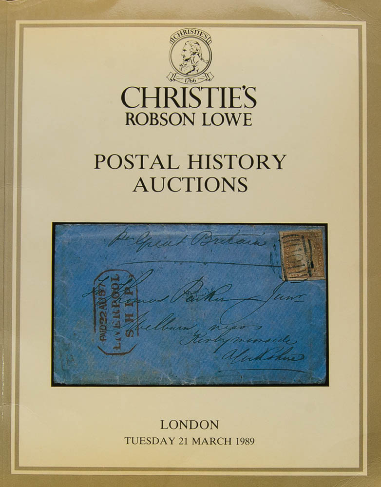 1989. POSTAL HISTORY AUCTIONS auction catalogue, held on March 21, 1989. Christie´s and Robson Lowe. London, 1989.