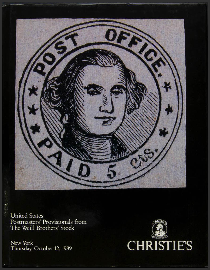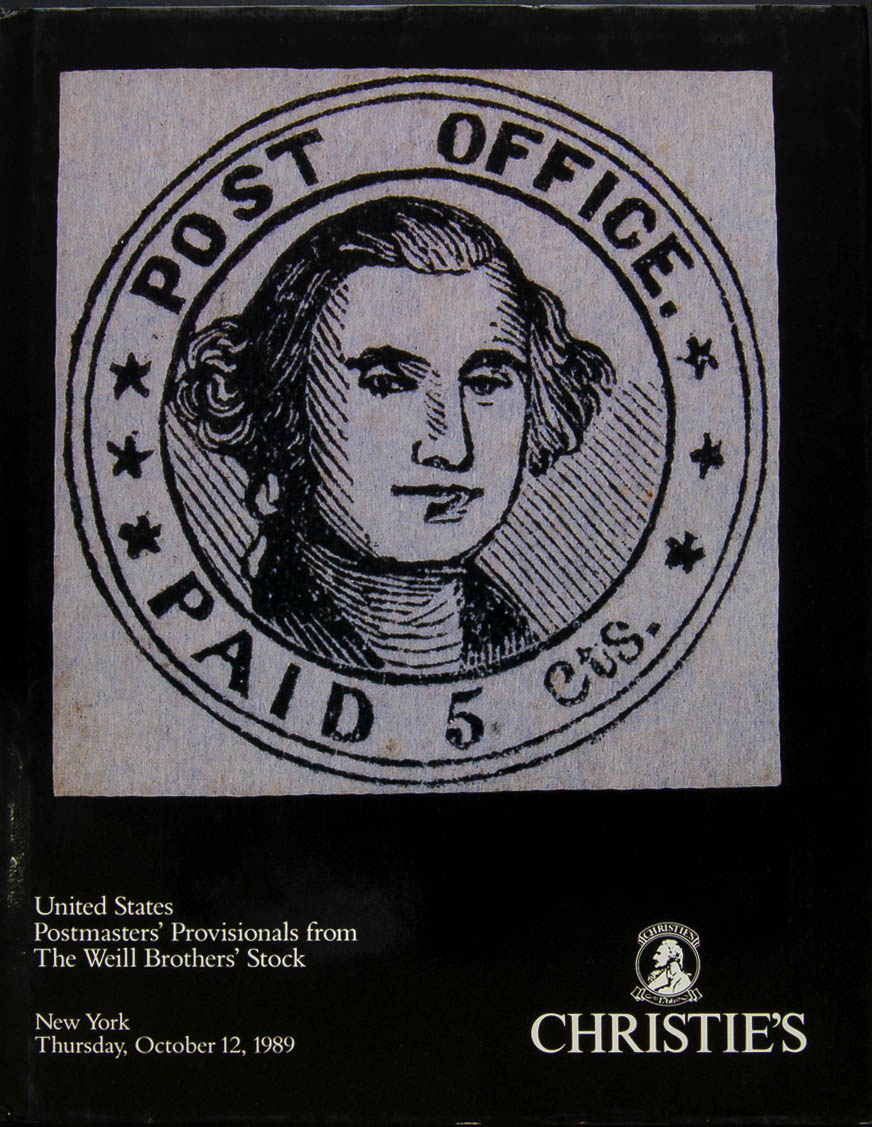 1989. Catalog UNITED STATES POSTMASTER'S PROVISIONALS FROM THE WEILL BROTHER'S STOCK, held on October 12, 1989. Christie's. New York, 1989.