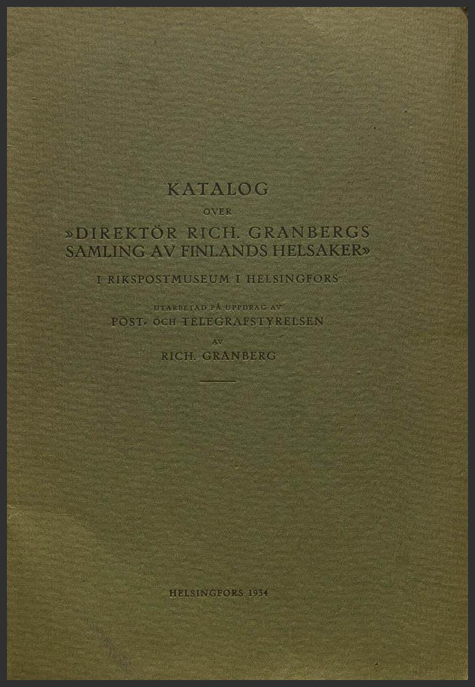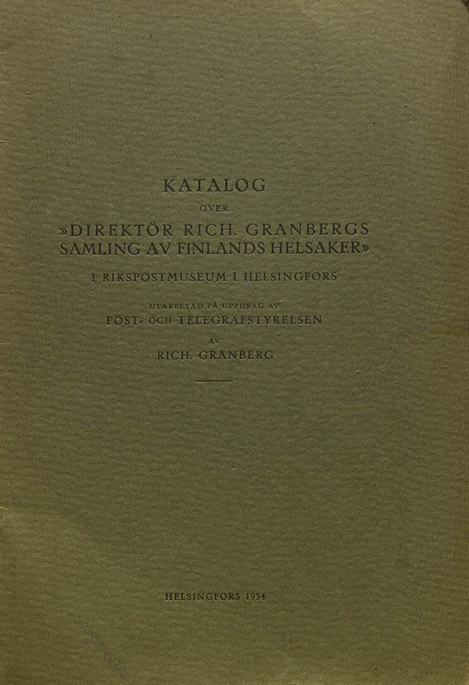 1934. KATALOG OVER "DIRECTÖR RICH. GRANBERGS SAMLING AV FINLANDS HELSAKER". Helsingfords, 1934.