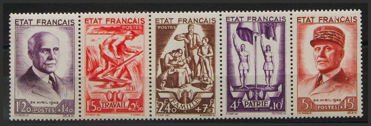 ★★Yvert 576/80. 1943. Complete series, in band of five. MAGNIFICENT. Edifil 2020: 110 Euros