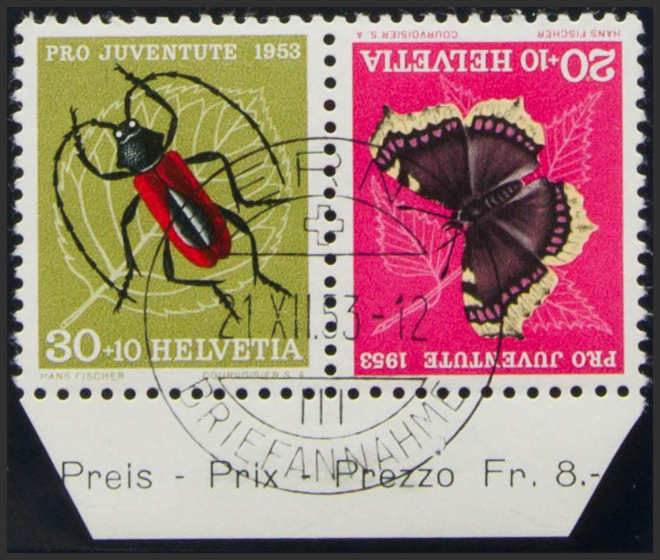 English Yvert 541a. 1953. 20 cts + 10 cts and 30 cts + 10 cts, in a capicúa pair. MAGNIFICENT. Edifil 2017: 30 Euros