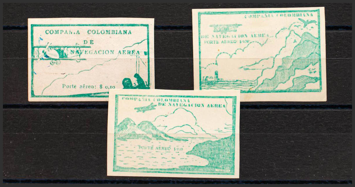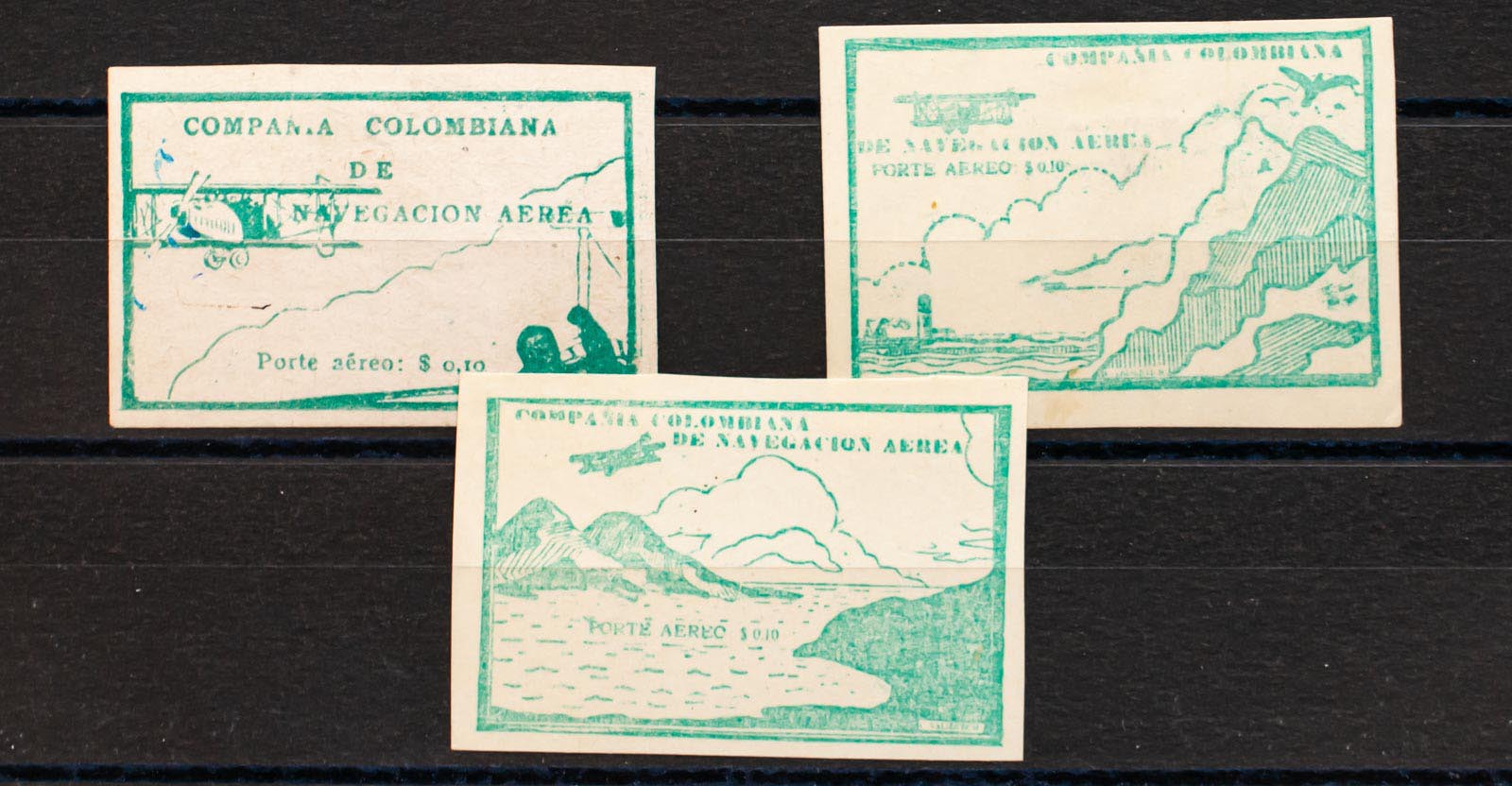 (★)Yvert 10, 12, 14. 1920. 10 cents green (Bay), 10 cents green (Lighthouse) and 10 cents green (Airplane). PRETTY. Yvert 2019: 380 Euros