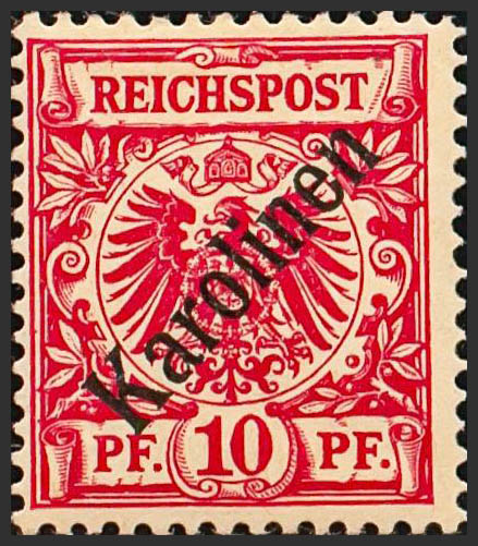★Yvert 3B. 1899. 10 p red. Type II overload (48º). PRETTY. Signed RFSTEVER. (Michel 3I)
