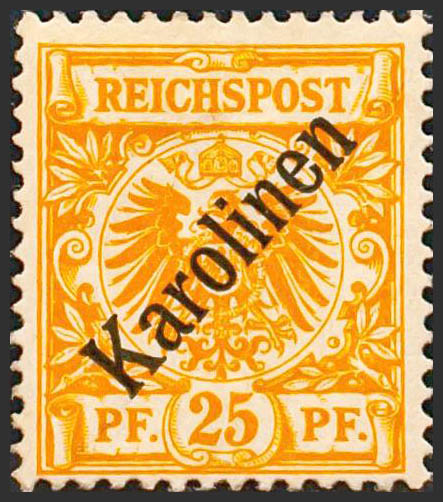 ★Yvert 5B. 1899. 25 p orange (non-original rubber). Type II overload (48º). MAGNIFICENT AND VERY RARE. RFSTEVER Opinion. (Michel 5I) Yvert 2017: 2,200 Euros