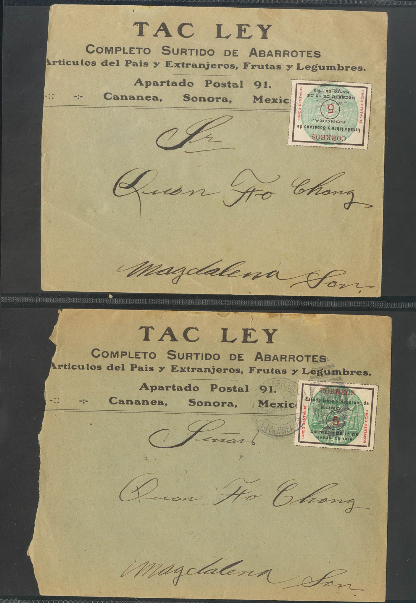 English 1913. Set of six letters franked with stamps from the Sonora issues of 1913 and 1914, all circulated internally. MAGNIFICENT AND RARE.