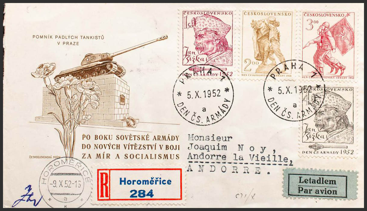1952. Complete series. HOROMERICE certificate to ANDORRA LA VIEJA. On the back arrival. MAGNIFICENT AND RARE DESTINATION.