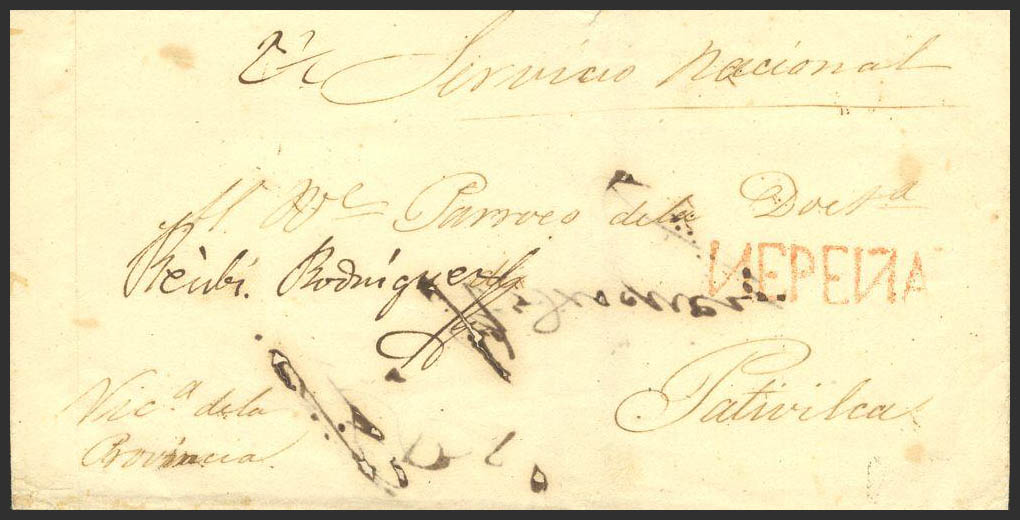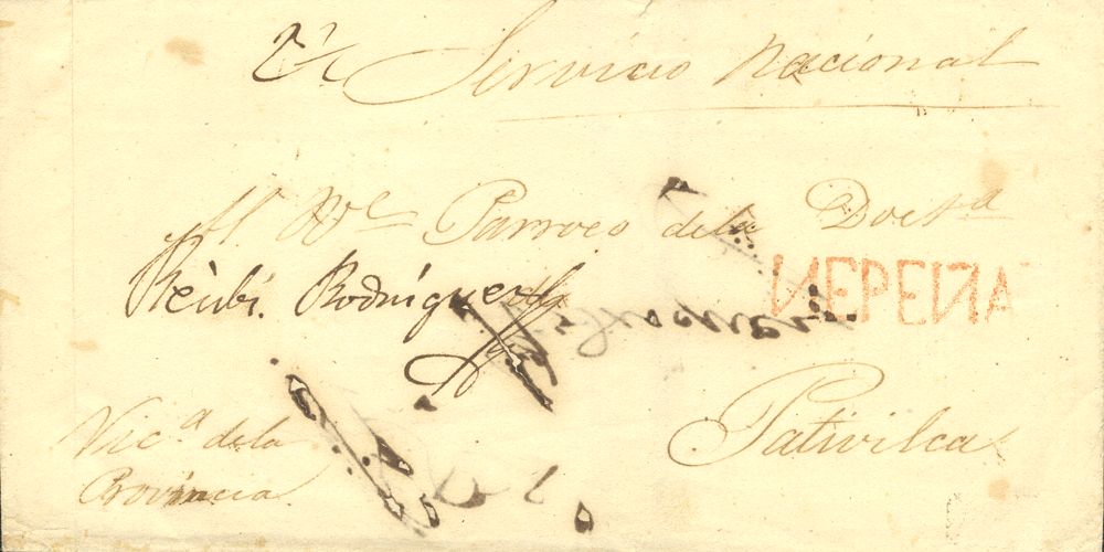 (1828ca). NEPEÑA to PATIVILCA. NEPEÑA brand, in red (Colareta 1). MAGNIFICENT AND RARE.
