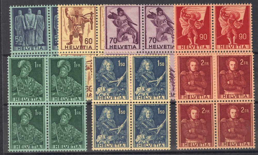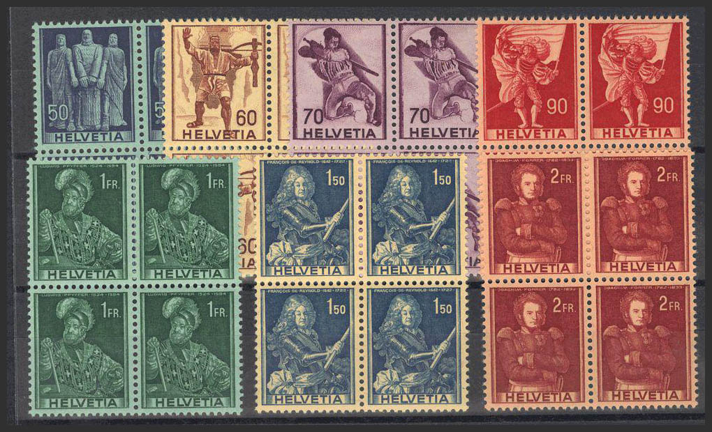 ★★Yvert 358/66(4). 1941. Complete series, except 80 cts and 1'20 fr, block of four. MAGNIFICENT. Yvert 2013: 226 Euros