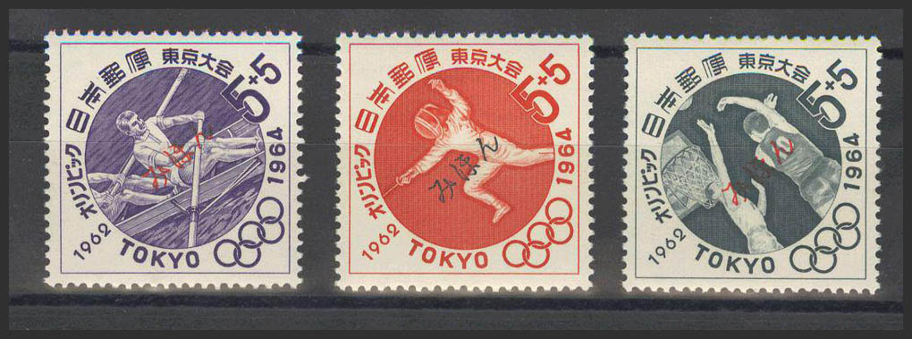 ★★Yvert 723/25. 1962. Complete series. Overhead "MIHON" (SPECIMEN). MAGNIFICENT.