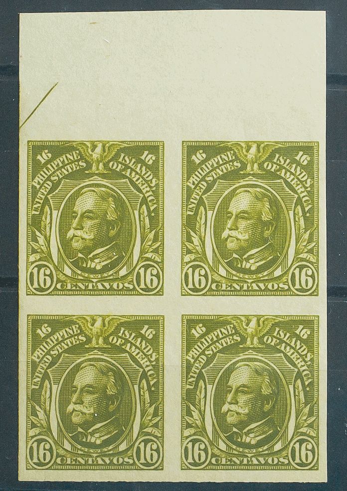 English ★★Yvert 212As(4). 1906. 16 cts olive green, block of four. NO TEETH. MAGNIFICENT. Yvert 2009: ++320 Euros