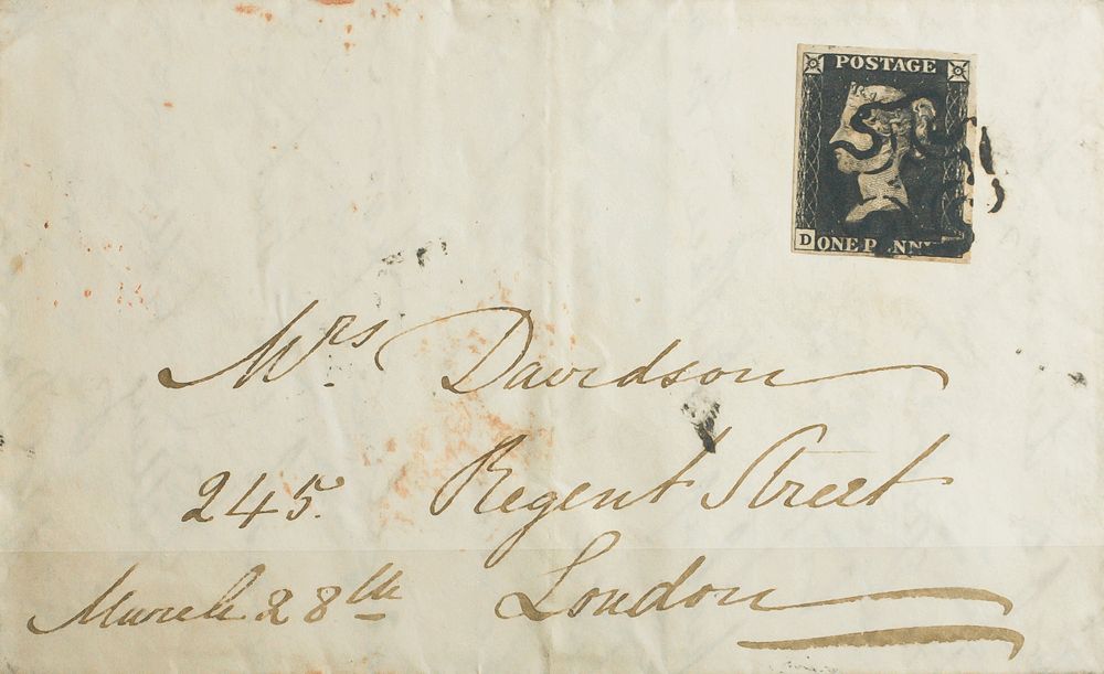 English Yvert 1. 1841. 1p black. Addressed to LONDON. CROSS OF MALTA postmark, in black. MAGNIFICENT AND RARE.