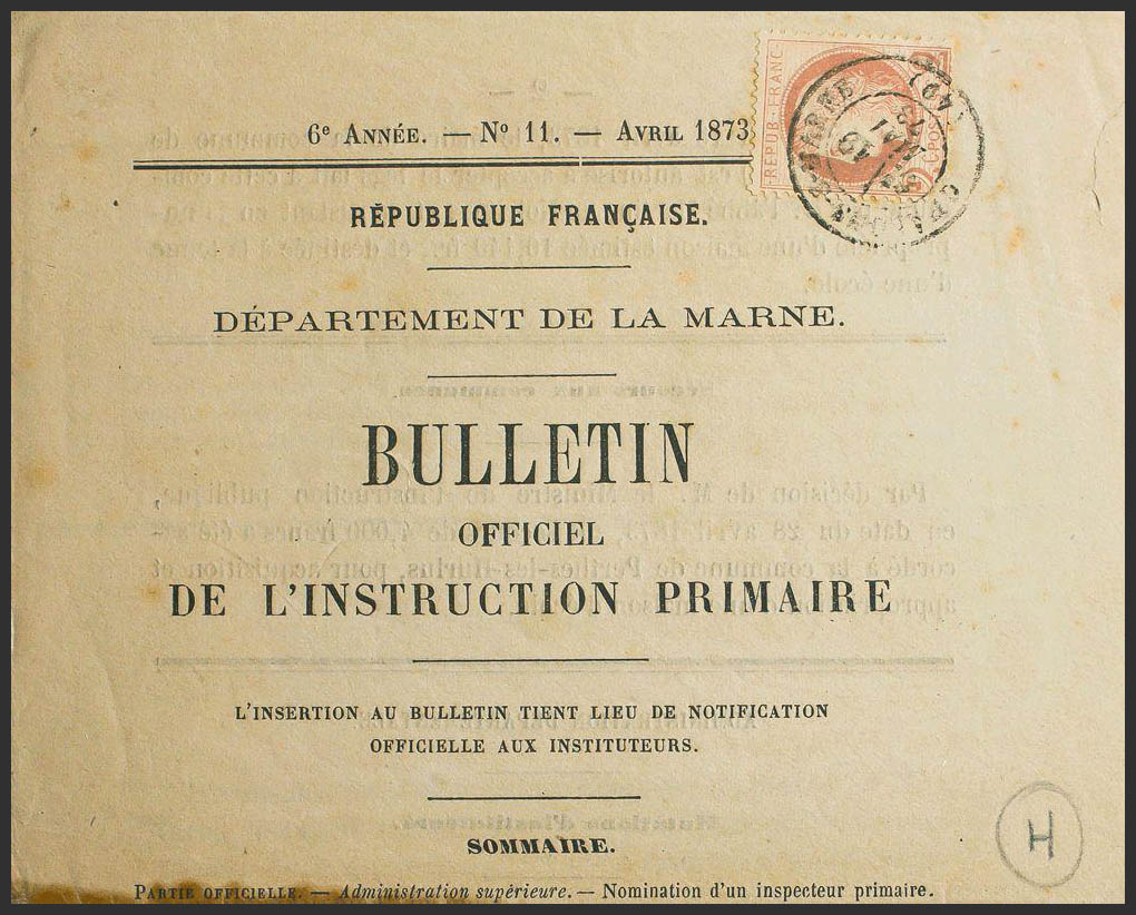 Yvert 51. 1873. 2 chestnut cts. Printed Complete with CHALONS SUR MARNE origin. Postmark CHALONS-S-MARNE / (49). MAGNIFICENT.
