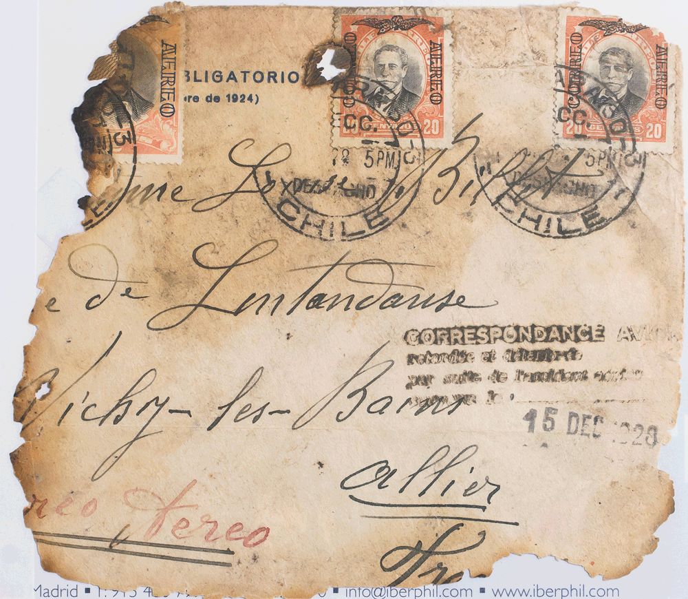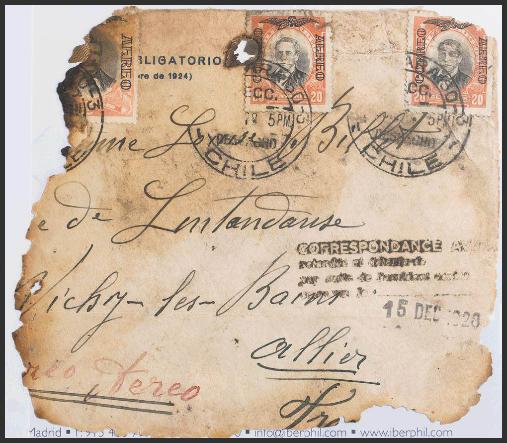 Air Yvert 6(3). 1928. Plane accident occurred on December 15 coming from South America via Barcelona and Toulouse, due to poor visibility in Malgrat the plane suffers an accident and part of the correspondence is recovered burned and the mark CORRESPONDANCE AVION / RETARDEE ET DETERIORE / PER SUITE is added OF L´ACCIDENT AERIEN. MAGNIFICENT AND RARE.