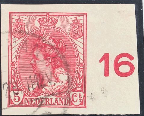 Yvert 51a. 1898. 5 cts rose, sheet edge with plate number. MAGNIFICENT.
