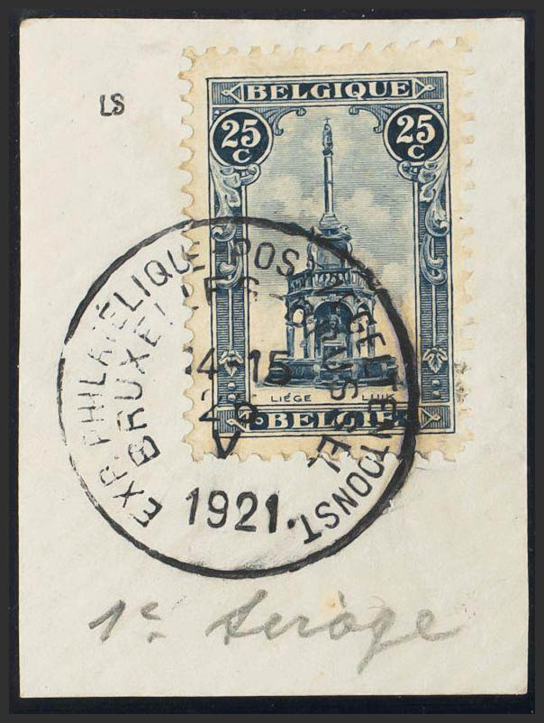 △ Yvert 164. 1919. 25 cts blue, on fragment. FIRST ROLL. MAGNIFICENT AND RARE.