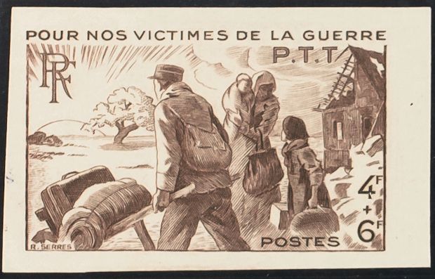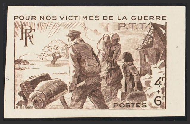 ★Yvert 737a. 1945. 4 fr + 6 fr lilac chestnut. NO TEETH. MAGNIFICENT. Yvert 2014: 42 Euros