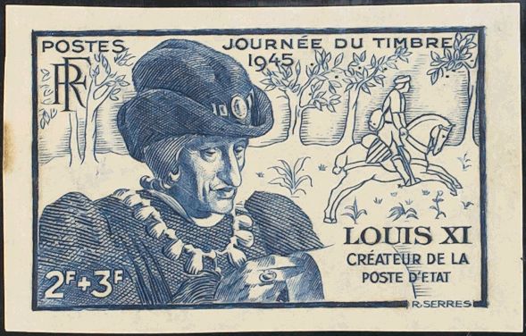 ★Yvert 743a. 1945. 2fr + 3fr blue. NO TEETH. MAGNIFICENT. Yvert 2014: 50 Euros