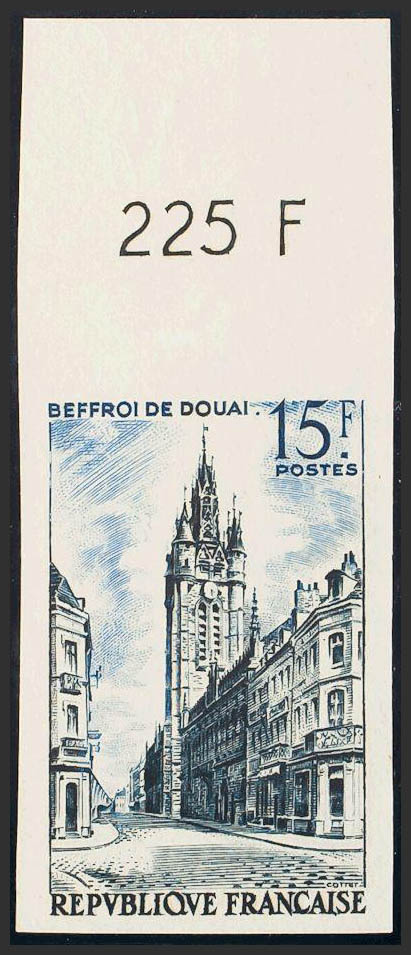 ★★Yvert 1051a. 1956. 15 fr dark blue and blue. NO TEETH. MAGNIFICENT. Yvert 2014: 23 Euros