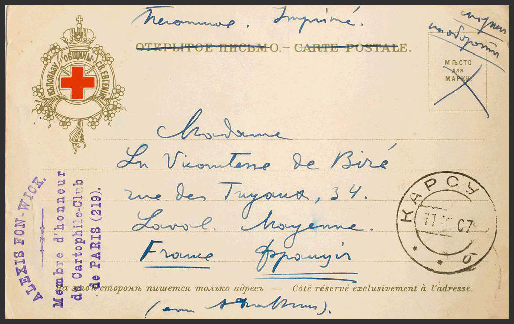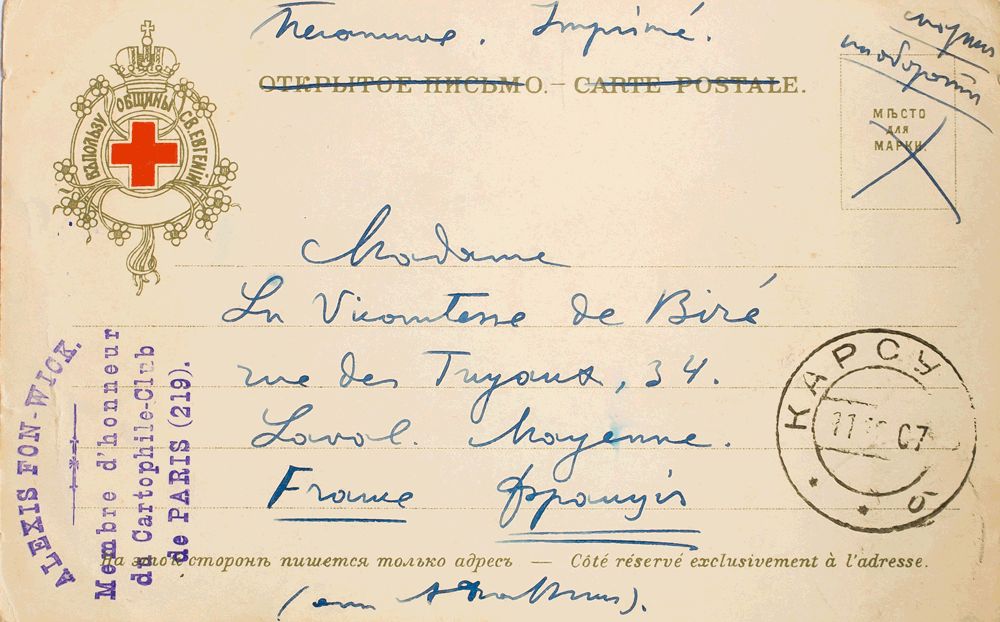 Yvert 39. 1907. 2k green. Postcard of the Red Cross from KARSUN to LAVAL (FRANCE). MAGNIFICENT.
