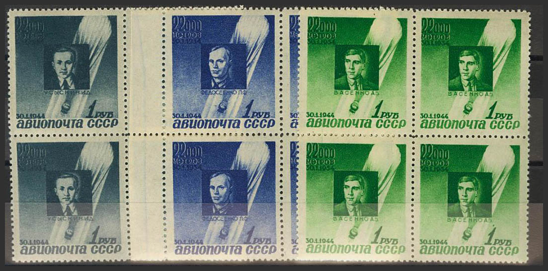 English ★★Yvert 67/69(4). 1944. Complete series, in a block of four. MAGNIFICENT. Yvert 2013: 151.2 Euros