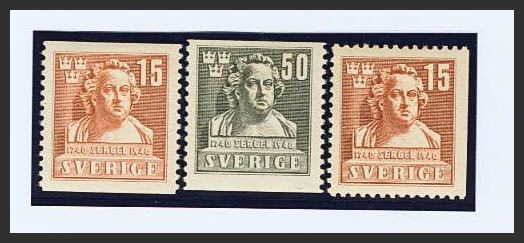 ★Yvert 281/82, 281a. 1940. Complete series and also the 15th light brown toothed on three of its sides. MAGNIFICENT. Yvert 2013: 42 Euros