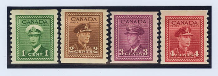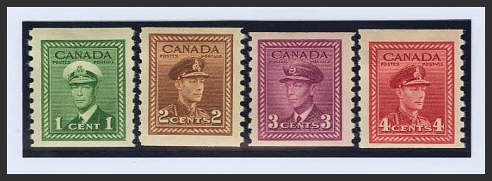 English ★Yvert 205/09a. 1943. Complete series, four values. TEETH 9 ½ vertical. MAGNIFICENT. (SG397/98a £28) Yvert 2011: €42.5