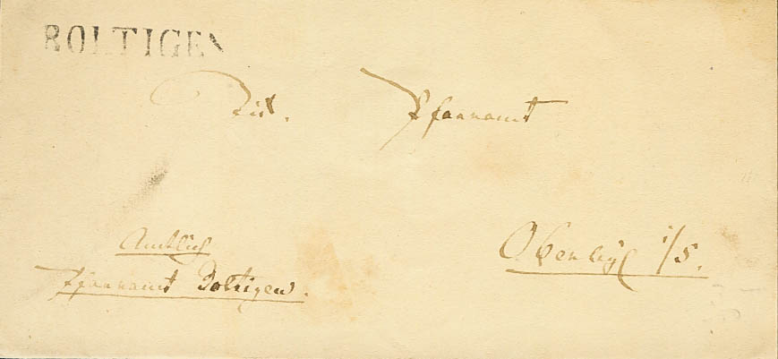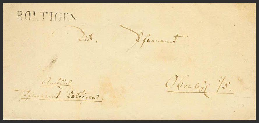 1856. BOLTIGEN to OBERWIL. BOLTIGEN brand, in black. MAGNIFICENT.