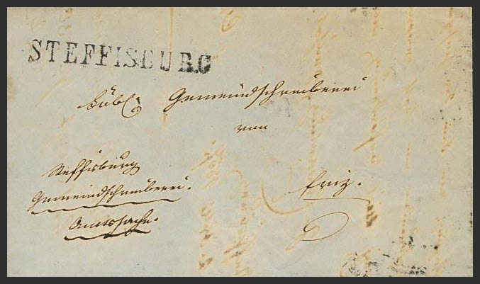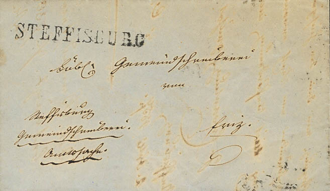 1857. STEFFISBURG to THUN. STEFFISBURG branding, in black. MAGNIFICENT.