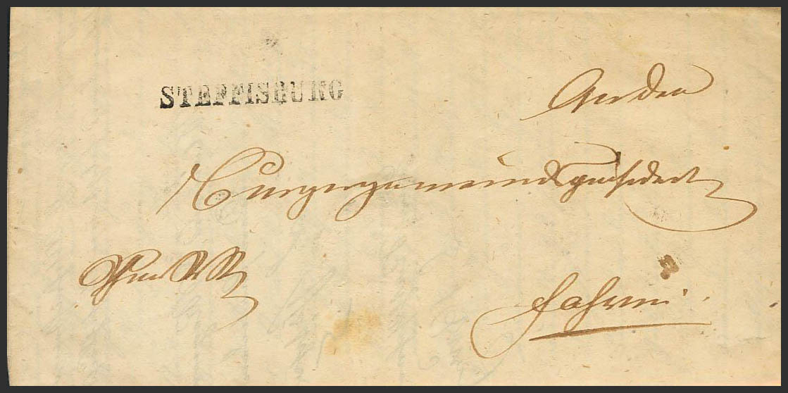 1853. STEFFISBURG to SAFNERN. STEFFISBURG branding, in black. MAGNIFICENT.