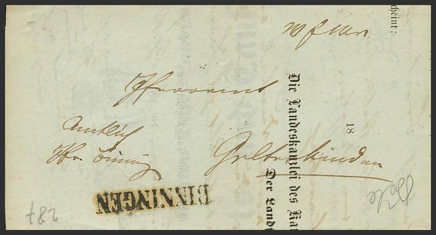 English 1864. BINNINGEN to GELTERKINDEN. BINNINGEN brand, in black. MAGNIFICENT.
